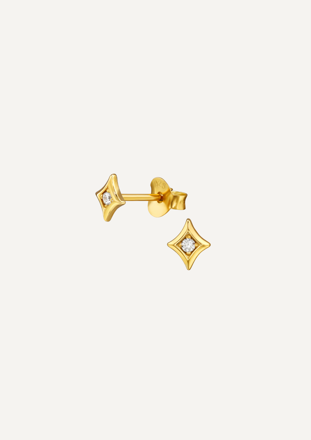 Each earring is crafted in 14ct gold vermeil, with a white zirconia set at the centre to catch the light with gentle clarity.