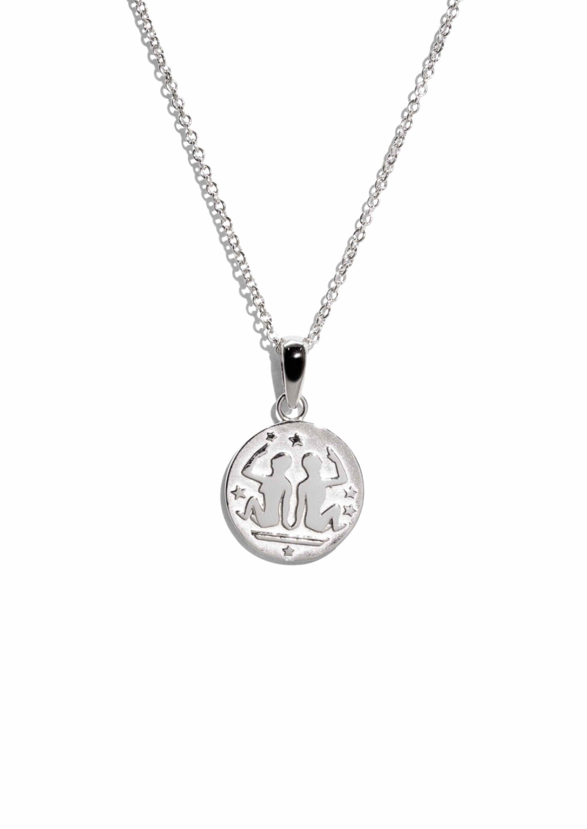 The Silver Zodiac Pendant Necklace features an otherworldly zodiac motif.