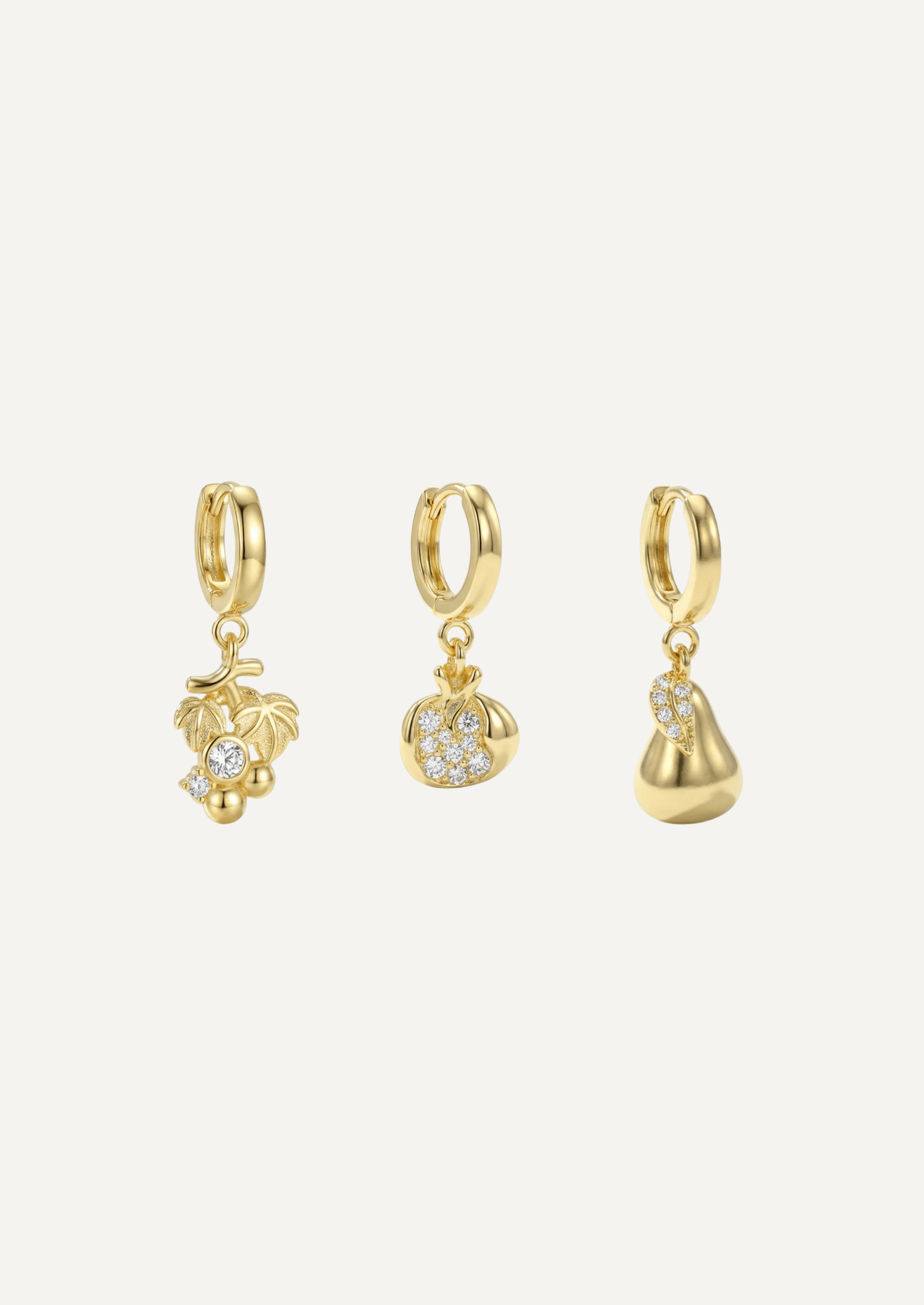 Finished with your choice of Soirée charm, the design takes on a celebratory note. Each charm clips seamlessly onto the chain, introducing a distinct silhouette inspired by fruit shared at long tables - a pear, a grape, or a pomegranate - rendered in 18ct gold vermeil and accented with cubic zirconia. The result is expressive yet composed, a subtle gesture of occasion suspended from sculptural form.