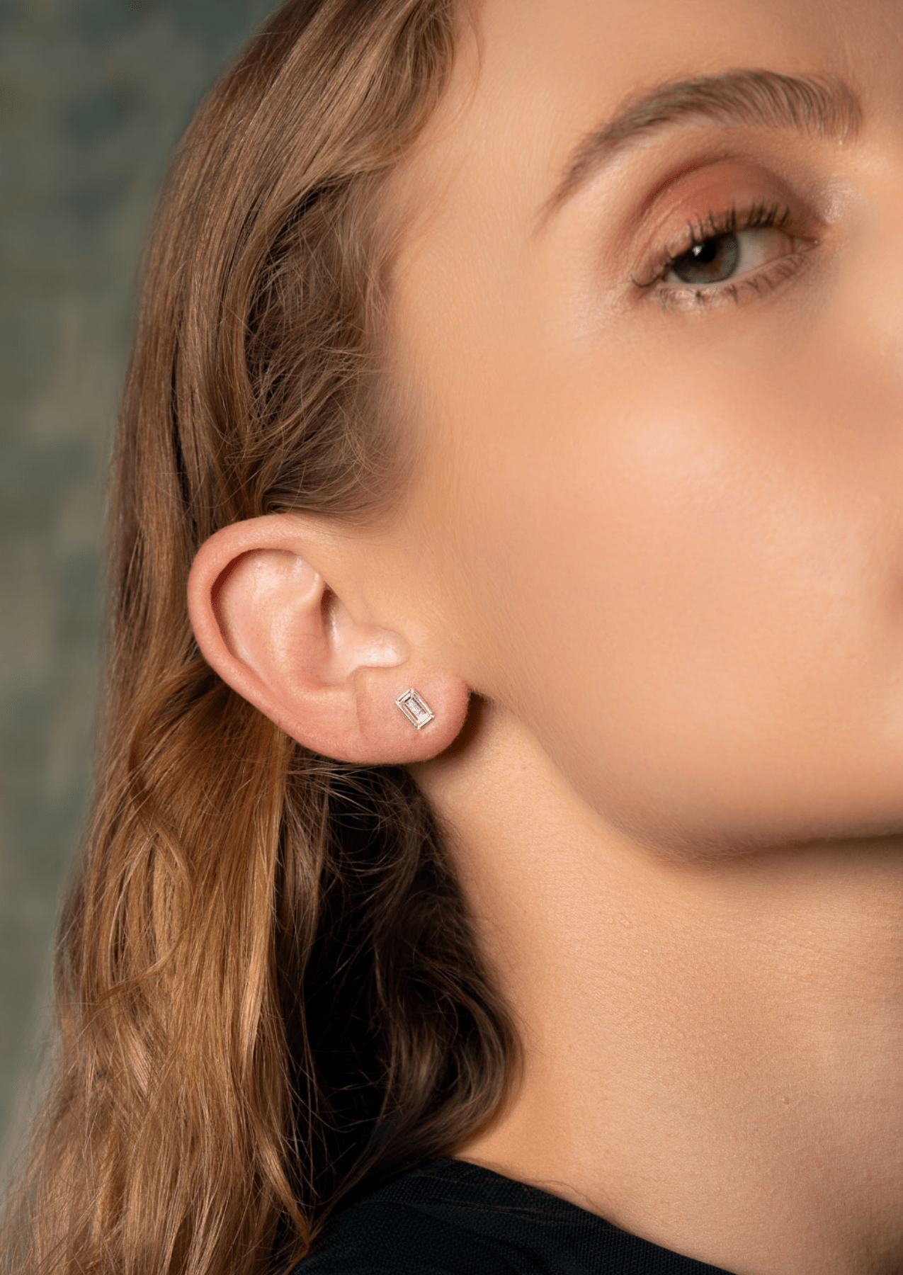 Channel modern sophistication with The Piazza Stud Earrings, featuring sleek baguette details.