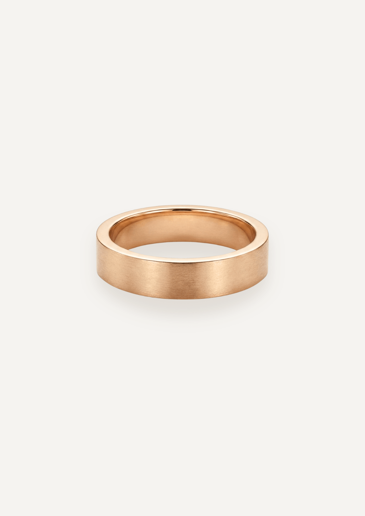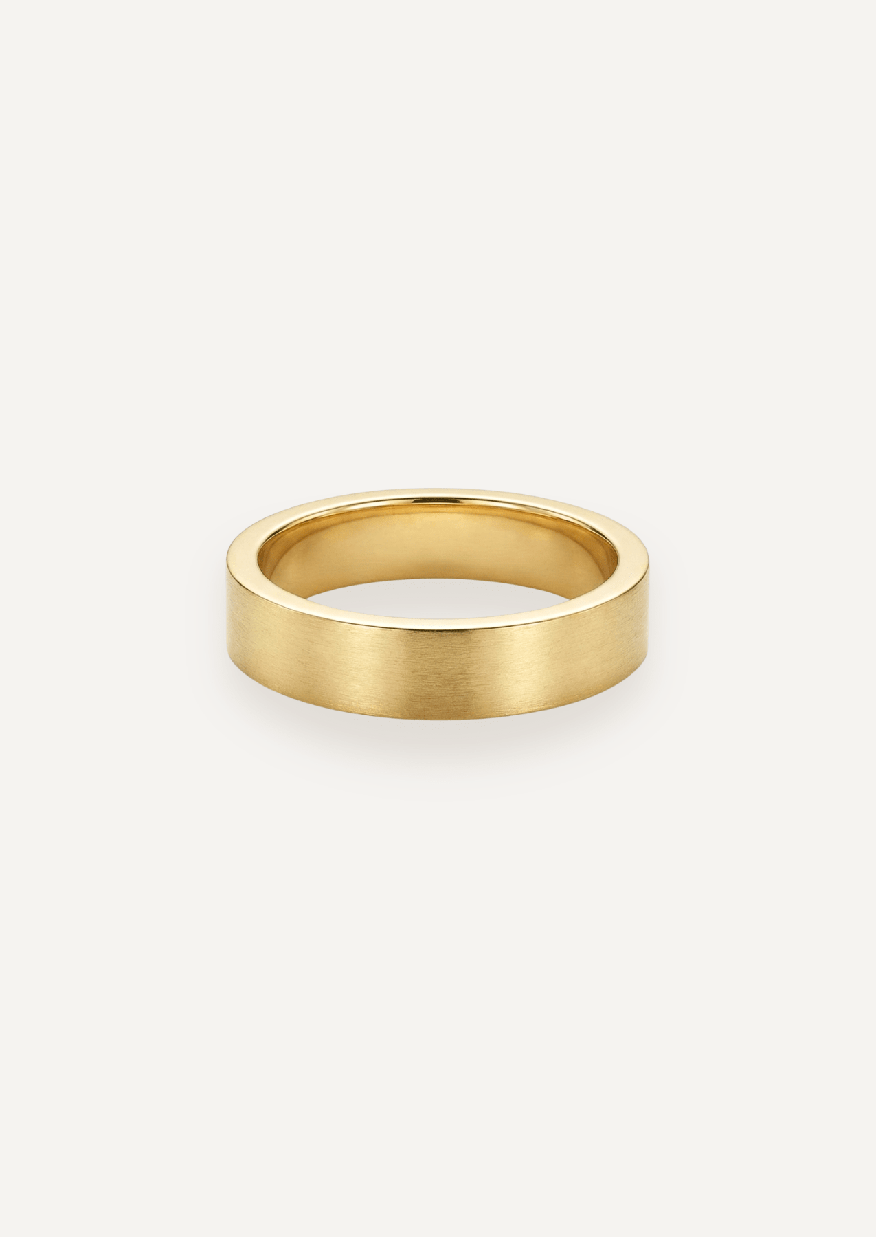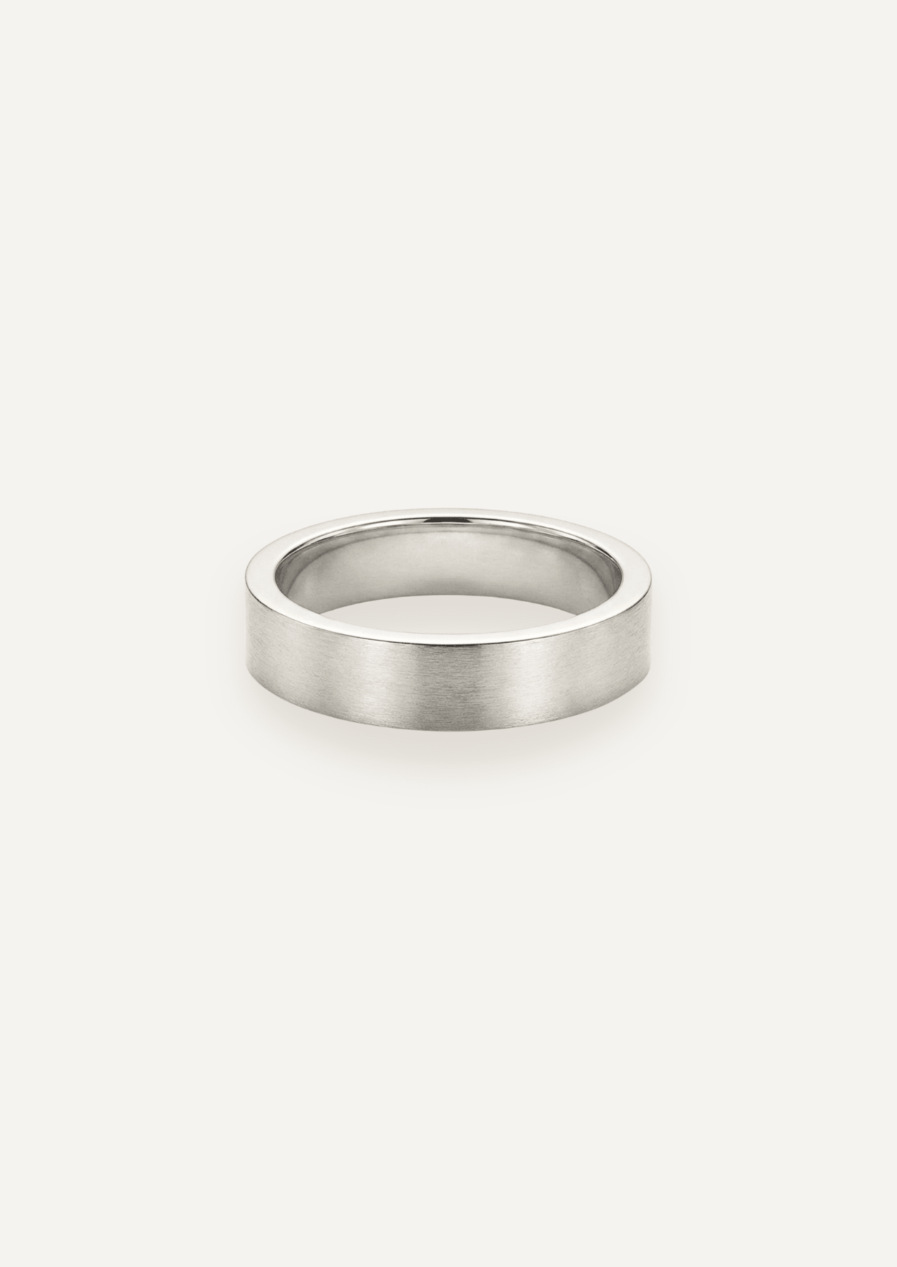 The Bold Helm Band refines the traditional wedding band into a sleeker, modern silhouette. Its flat outer surface with straight edges gives a minimalist, contemporary feel, while the classic inner fit ensures effortless daily wear.